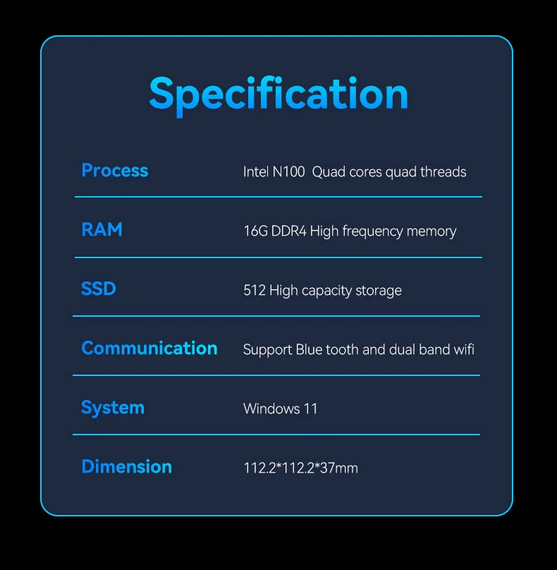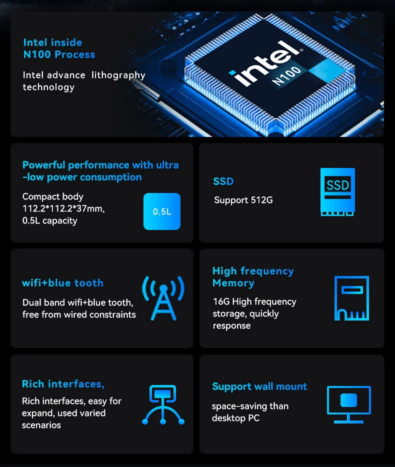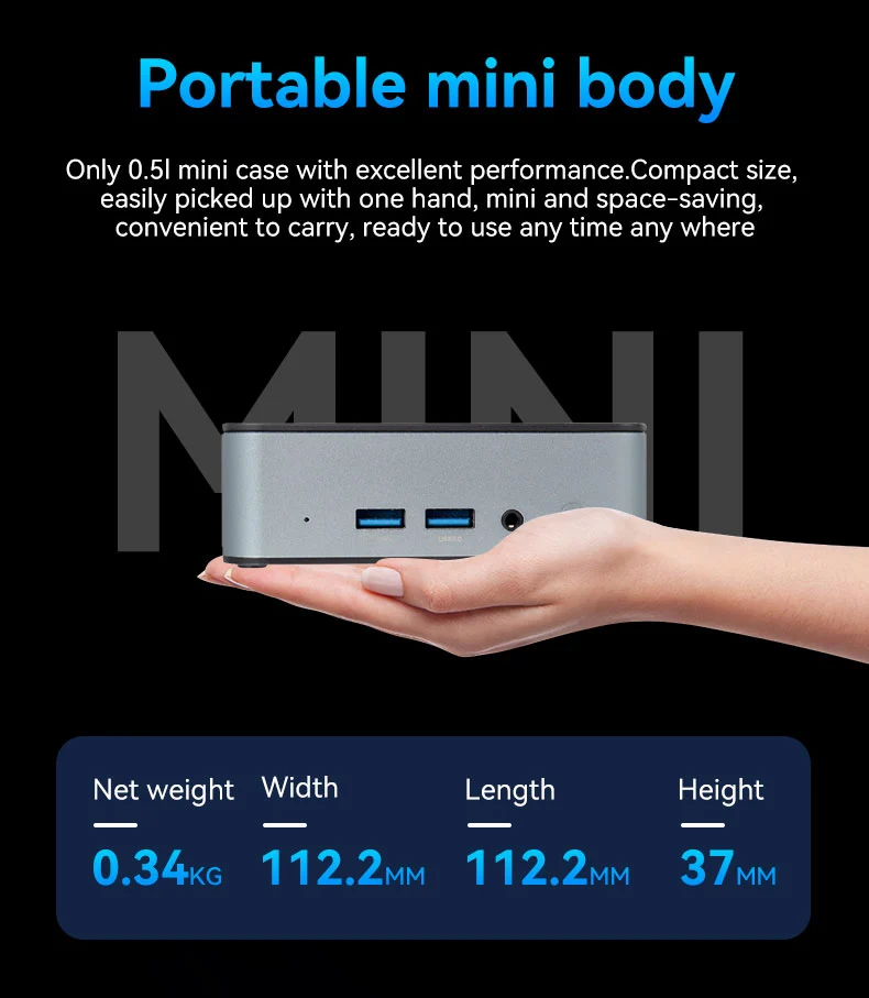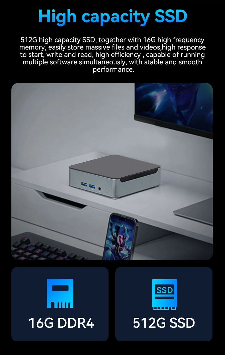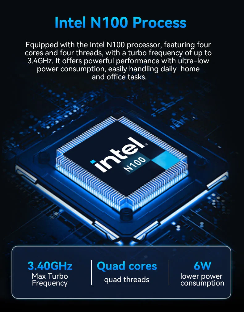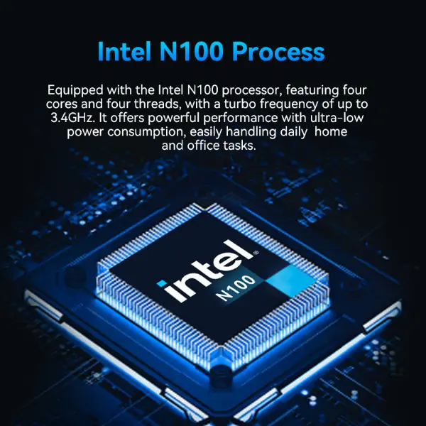 Powerful Processor: Intel N100 quad-core, turbo up to 3.4GHz