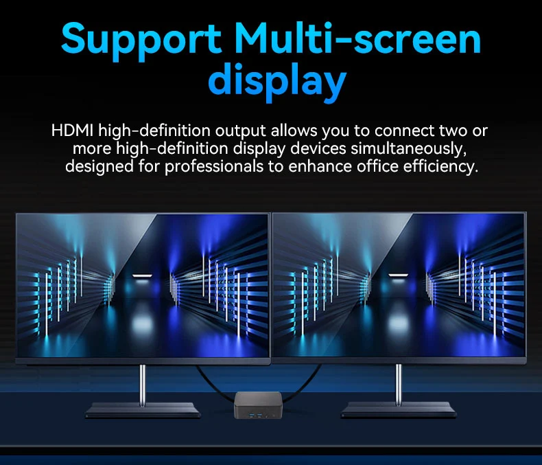 Multi-Screen Output: HDMI supports dual high-definition displays