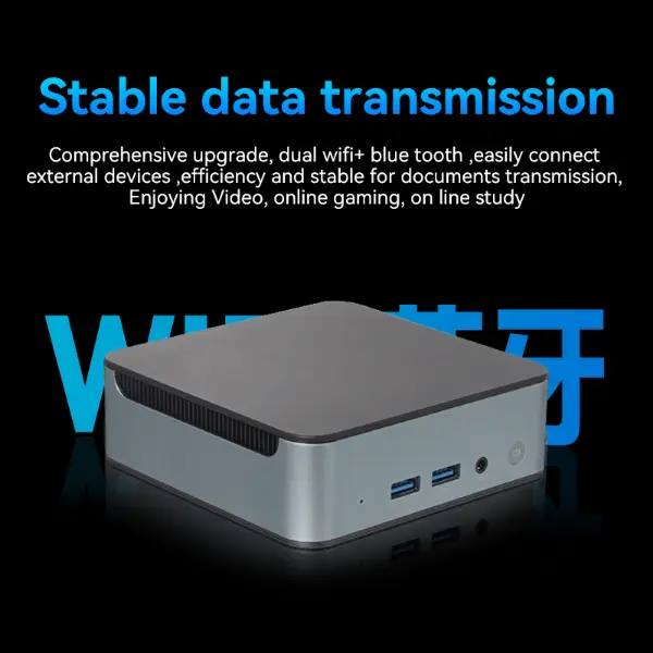 The A105A Mini PC delivers powerful performance in a compact form. Equipped with an Intel processor, fast memory, and SSD storage, it ensures smooth multitasking for work and entertainment. With HDMI multi-display support, dual-band WiFi, and Bluetooth, it provides flexible connectivity in a sleek, space-saving design.