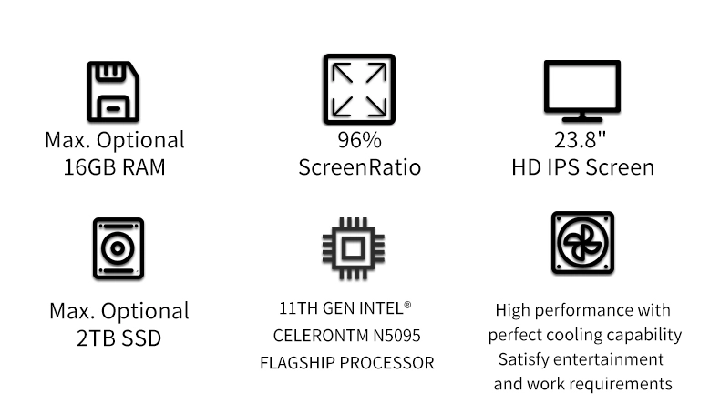 Un PC All-in-One elegante e poco ingombrante che combina prestazioni potenti con un design minimalista. Ideale per la casa, ufficio, o uso commerciale, È dotato di un display integrato, Elaborazione ad alta velocità, e connettività senza interruzioni, tutto in un unico dispositivo semplificato.