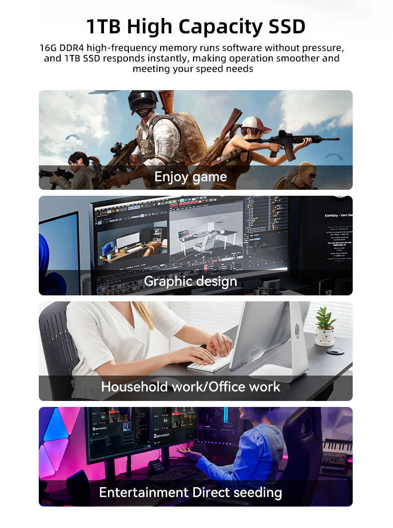 Offriamo una vasta gamma di dispositivi, compresi i desktop, Computer portatili, e PC all-in-one, adatto per la casa, ufficio, gioco, e applicazioni industriali.